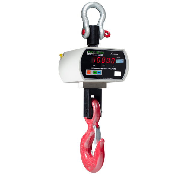 Balança Suspensa com capacidades para 10.000kg, 15.000kg e 20.000kg. Equipamento de grande capacidade, estrutura em aço carbono com pintura epóxi, gancho e manilha em aço forjado, ideal para pesagens em pontes rolantes, munck, guindastes, pórticos, talhas, etc.É indicado à empresas que requerem maiores pesagens com absoluta precisão, robustez e segurança.